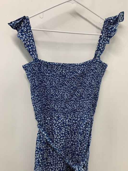 Baltic Born Women XL Hadley Smocked Jumpsuit Navy Floral Flutter Sleeveless Crop