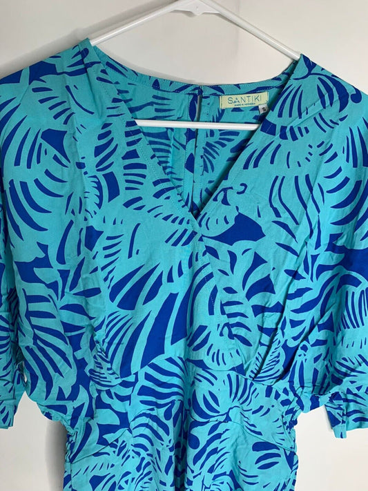 Santiki Womens XL Rosanna Romper Blue Tropical Floral V Neck Beach Cover Up
