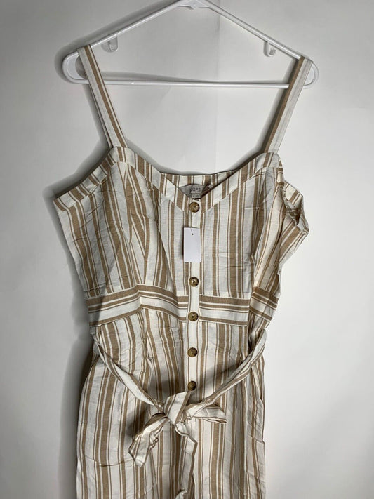 LOFT Womens 14 Striped Strappy Jumpsuit Seaside Sand Ivory Sleeveless Linen