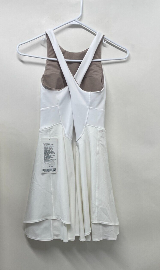 Lululemon Womens 4 Court Crush Tennis Dress White Built-in Bra Mini Fit & Flare