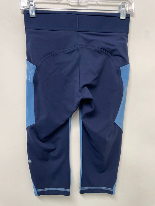 Lululemon Womens 6 Logo Waistband Training Leggings Navy Blue Cropped LW6CNYS