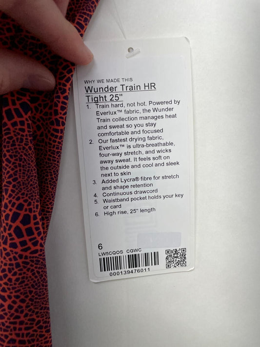 Lululemon Womens 6 Wunder Train HR Tight Legging 25" Crackle Glaze Orange
