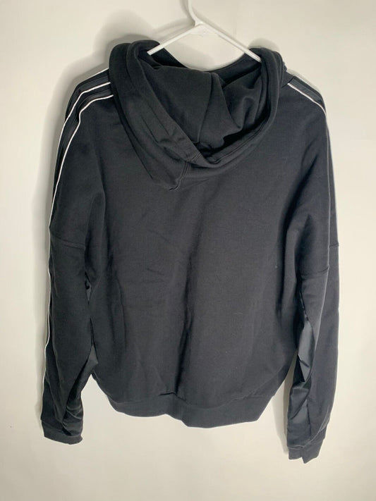 adidas Originals Men M Black Spirit Shadow Stripe Satin Hoodie Sweatshirt H31284