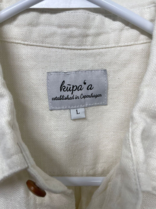 Kupa'a Copenhagen Mens L Button Down Camp Hemp Shirt White Long Sleeve Hawaii