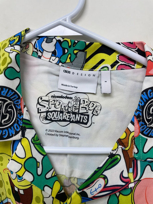 ASOS Men's S Relaxed Revere Shirt Bright Spongebob Character Print 117607575 NWT