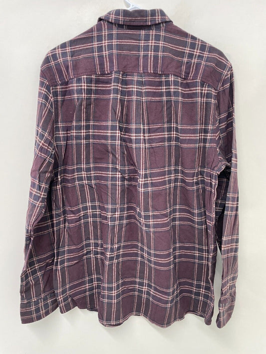 Alesbury Mens L Puente Brushed Flannel Button Up Plaid Dress Shirt Burgundy