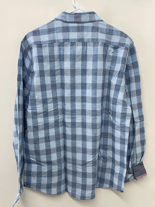 Flag & Anthem Mens L Tall Brewster Slub Button Up Shirt Blue Plaid Long Sleeve