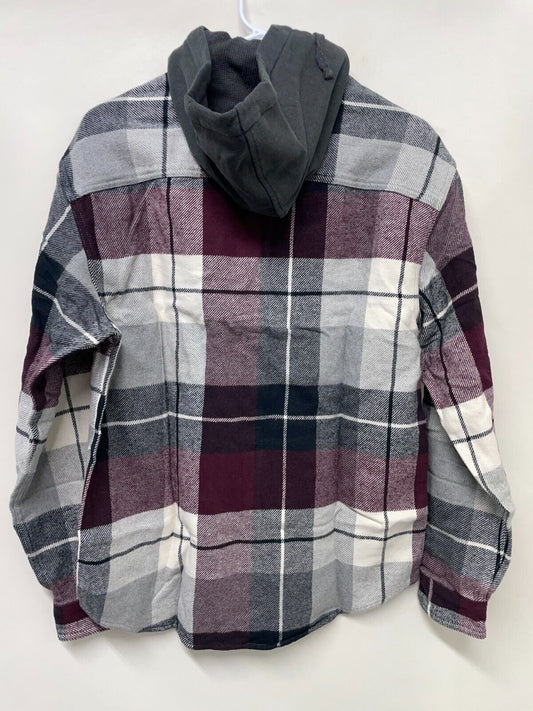 American Eagle Outfitters Mens S Hooded Flannel Button Up Shirt Maroon Plaid