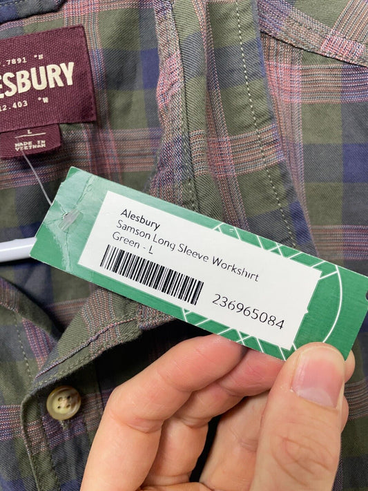 Alesbury Mens L Samson Long Sleeve Twill Workshirt Plaid Green Regular Fit Shirt