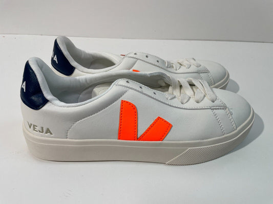 Veja Men's 7 Campo Chromefree White Leather Cobalt Orange Fluo Sneaker CP052195B