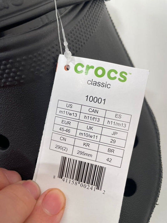 Crocs Men's 11/Womens 13 Classic Clog Black 10001-001 Lightweight Shoe Sandals