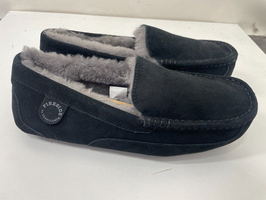 Fireside By Dearfoams Mens 9 Melbourne Genuine Shearling Moccasin Slippers Black