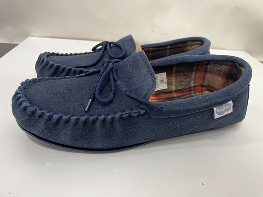 Snugrugs Mens 10 Genuine Suede Moccasin Slipper Navy Soft Step Cotton Lining