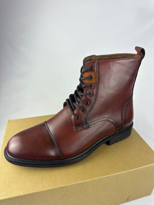 Arkbird Mens 11 Motorcycle Combat Boots Brown Genuine Leather Lace Up Casual