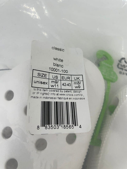 Crocs Unisex M9 W11 Classic Clogs White Comfort Water-Friendly 10001-100 Mens