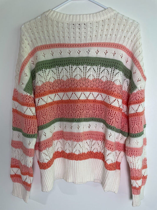 LOFT Women's XL Mixed Pointelle Pullover Sweater Long Sleeve Cayman Pink 767002