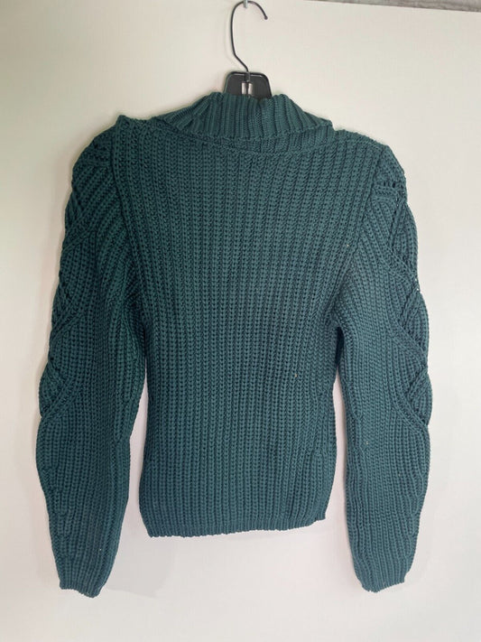 Express Women's S Ribbed Scoop Neck Long Sleeve Sweater Top Green 08263004