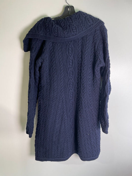 Aran Crafts Women's L Cable Knit Merino Wool Large Collar Coat Sweater Navy Blue