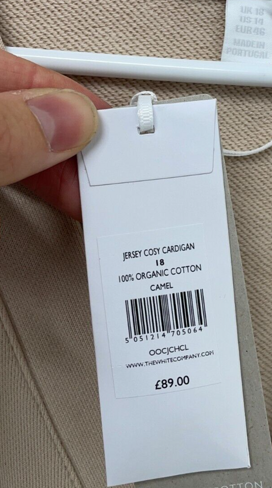 The White Company Women's 14 Jersey Cosy Cardigan Camel Organic Cotton OOCJC NWT