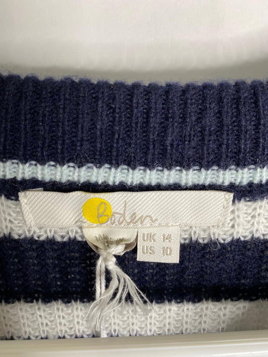 Boden Womens 10 Navy White K0486 Catherine Woven Fluffy Sweater Striped Broderie