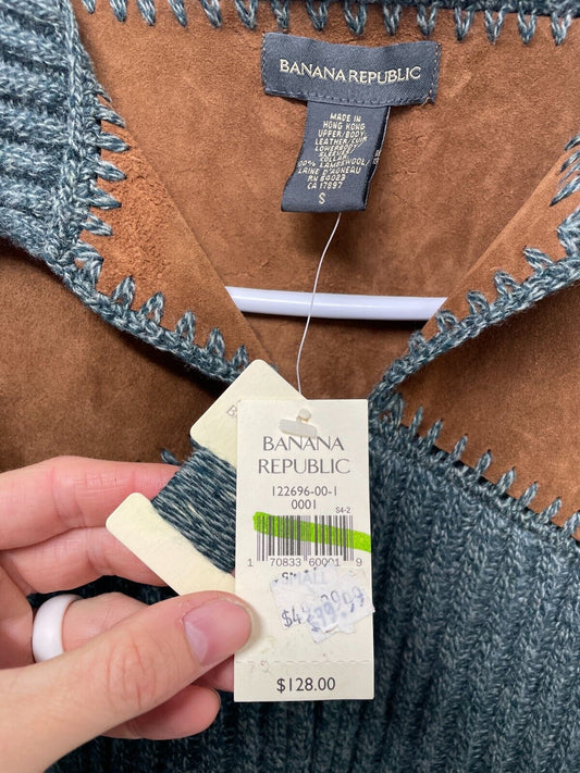 Banana Republic Women's S Lambswool & Suede Knit Sweater Green Brown NOS Vintage
