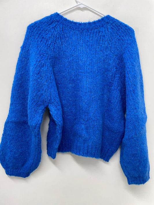 By-Bar Womens S Mae Hector Cardigan Sweater Blue Wave Alpaca Wool Puff Sleeve