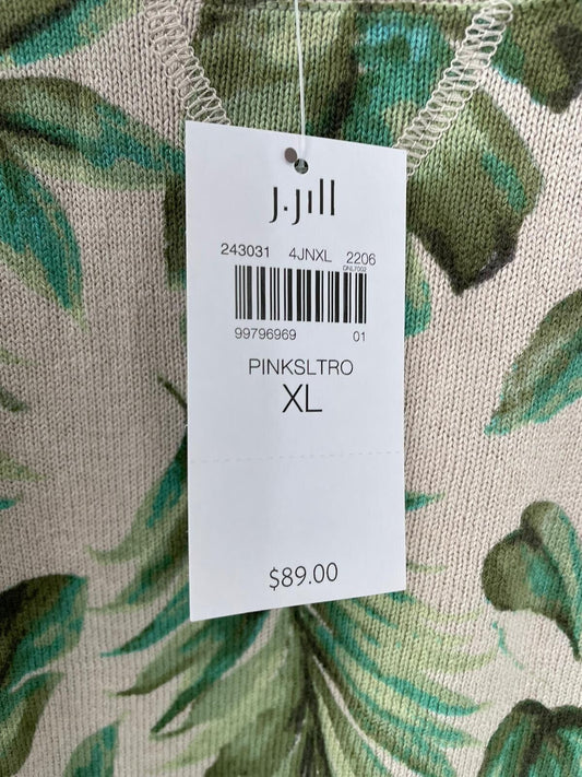 J Jill Womens XL Palm Leaf Printed Sweater Pullover Pink Salt Royal Palm