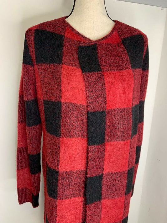 Through the Country Door Womens M Buffalo Plaid Eyelash Sweater Duster Cardigan