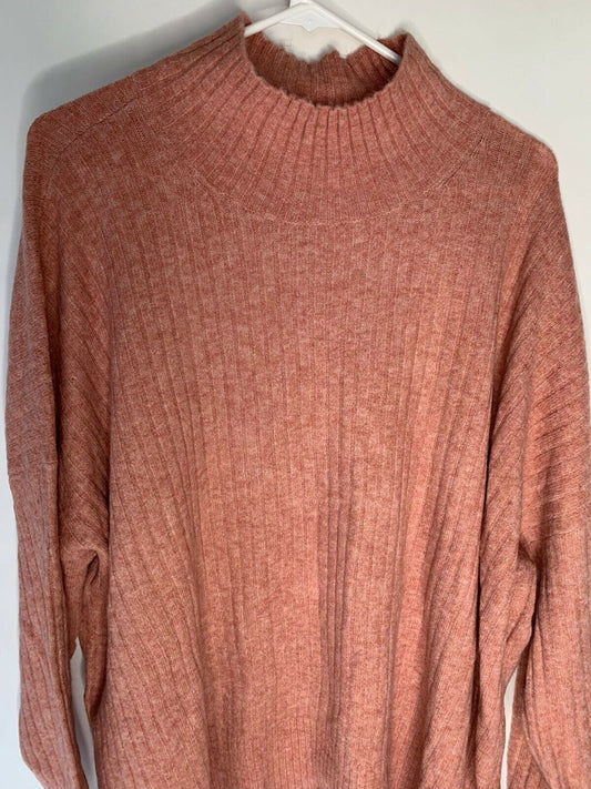 LOFT Womens XL Turtleneck Poncho Sweater Ribbed Cozy Blush Pink Mock Neck