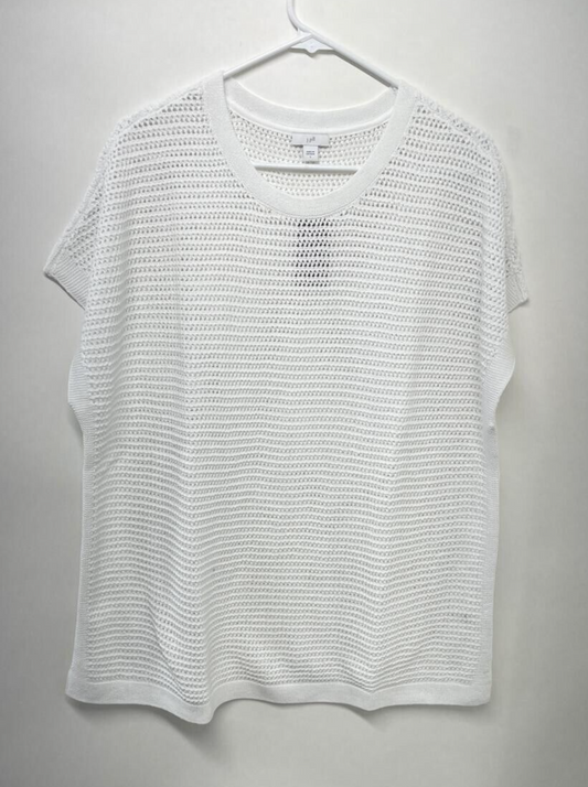 J Jill Womens L Textured Open Stitch Sweater Knit Poncho Tunic White