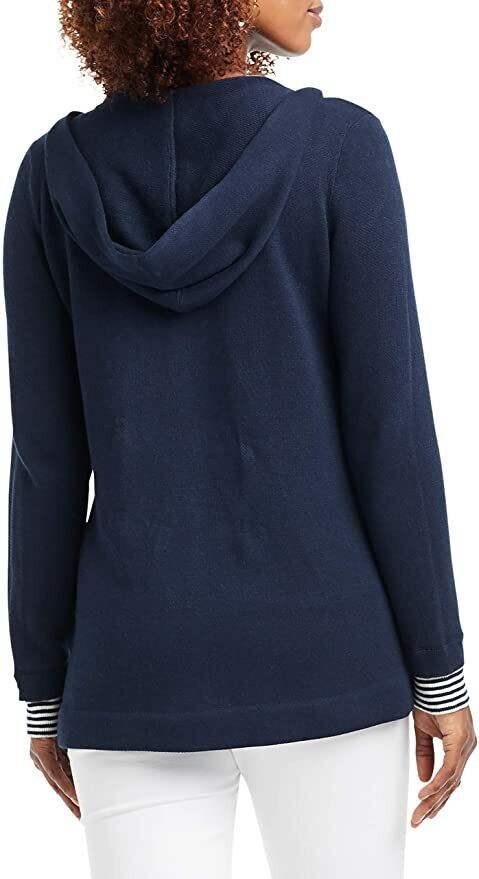 Nic + Zoe Womens XS Dark Indigo Navy Lace-Up Hoodie Sweater Pullover