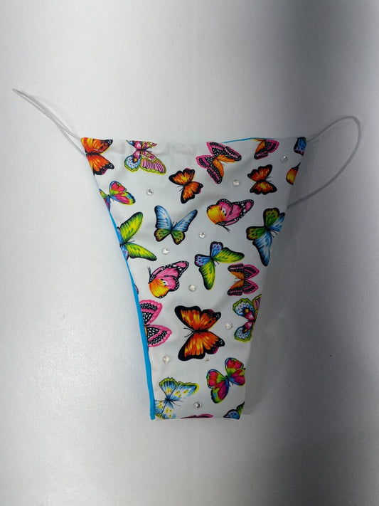 Selfe Women's M String Bikini Bottom Multi Butterfly Rhinestones Swim Cheeky