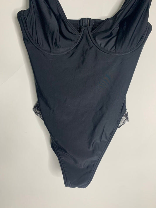 Wolf & Whistle Womens 34FF Black Fuller Bust Underwire Lace Swimsuit One Piece