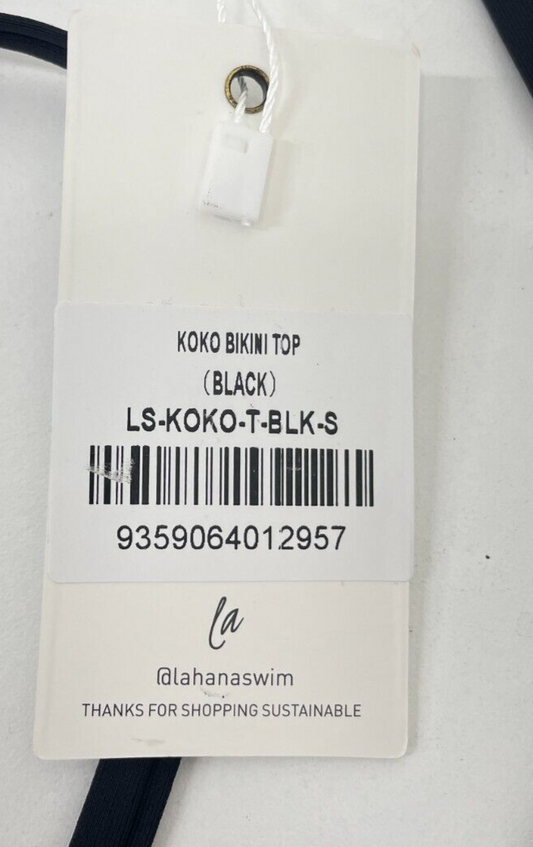 Lahana Womens S Koko Bikini Top Black Seamless Edges Minimal Tie Back Swimwear
