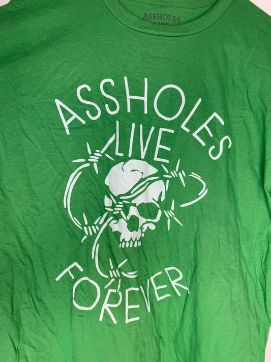 A**holes Live Forever Mens XXL Green Skull & Barb Wire T Shirt Linda Finegold