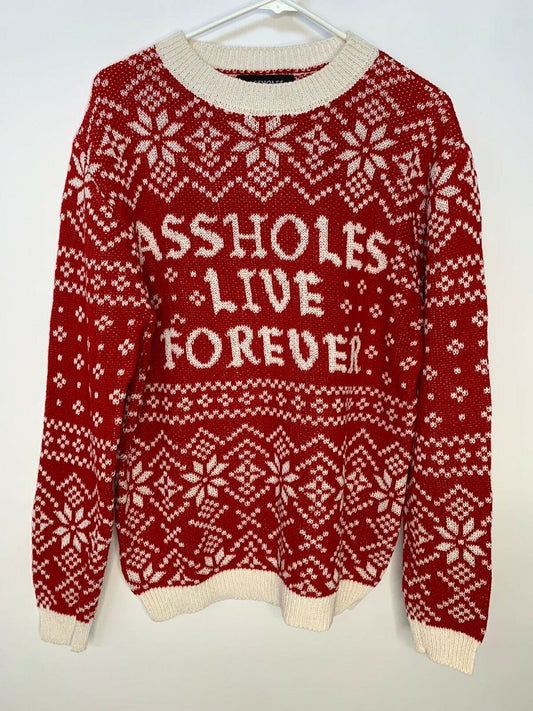 A**holes Live Forever Linda Finegold Mens M Fair Isle Holiday Sweater Christmas