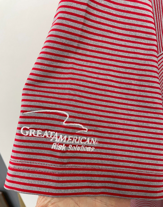 Under Armour Men's XL Playoff Polo Red Gray Stripe Loose Fit UPF 30 1283706 NWT