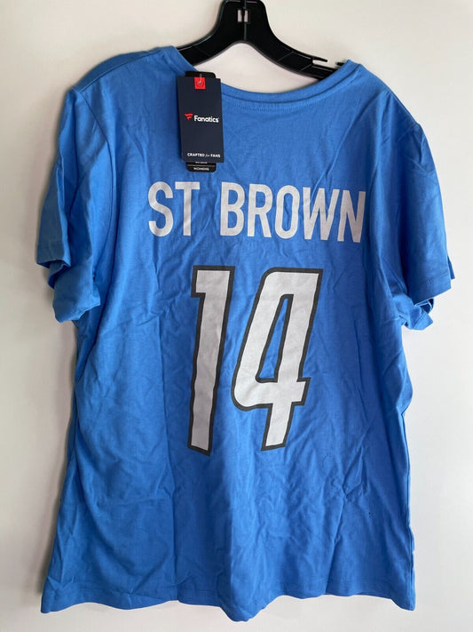 Fanatics Women 1X Detroit Lions NFL Amon Ra St. Brown V-Neck Blue Jersey T Shirt