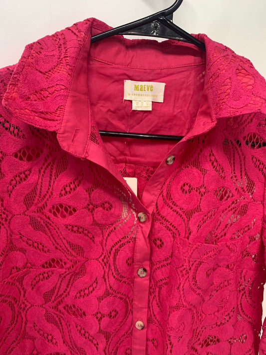 Maeve by Anthropologie Womens 2 Pink Rose Lace Button Down Shirt Top
