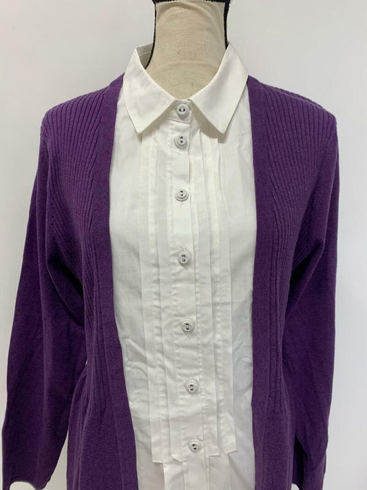 Foxcroft Womens 1X Purple Sweater Button Down Top Pleated Dress Shirt Rib Tunic