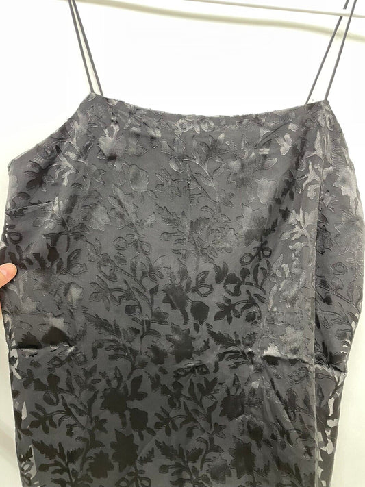 Club Monaco Womens M Black Burnout Cami Tank Top Sleeveless Blouse Silk Floral