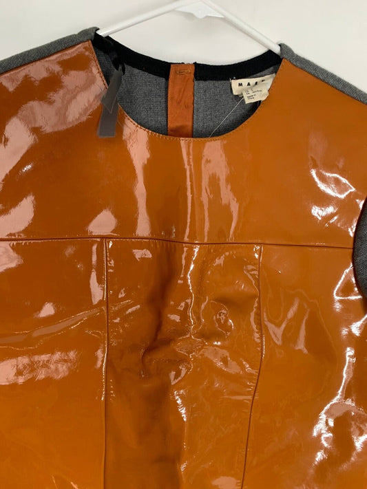 Marni by H&M Womens 6 Rust Orange Gray Color Block Patent Leather Top
