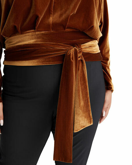 Good American Womens 2 M Copper Brown Belted Velvet Wrap Dolman Velour Top