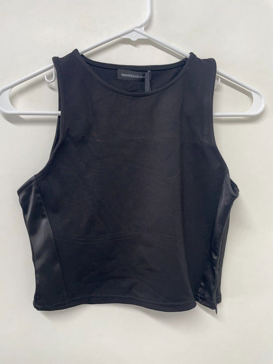 Maniere De Voir Womens 6 Racer Crop Top With Satin Panels Black Sleeveless
