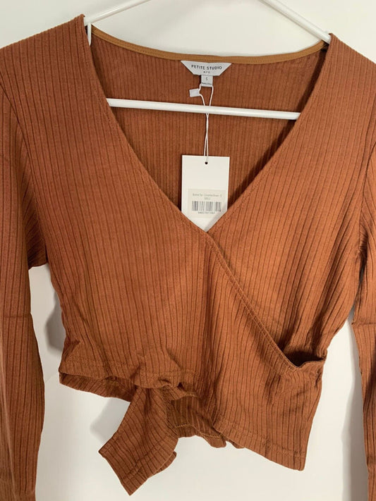 Petite Studio NYC Womens S Bonnie Crop Top Cinnamon Brown