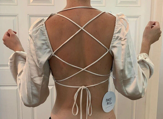 Princess Polly Womens Champagne Satin Dominica Crop Long Sleeve Top Strappy Back