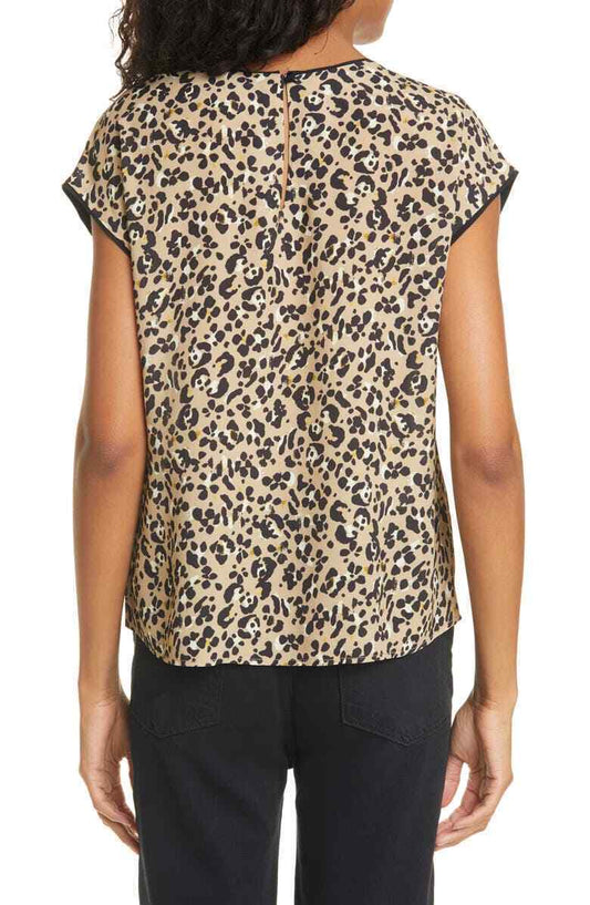 Seventy Venezia Womens 12 Camica Leopard Print Blouse Top Shirt Keyhole Beige