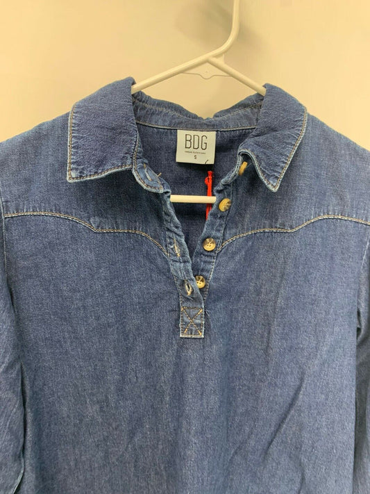 BDG Urban Outfitters Womens S Dark Wash Blue Denim Popover Shirt Top Button Down