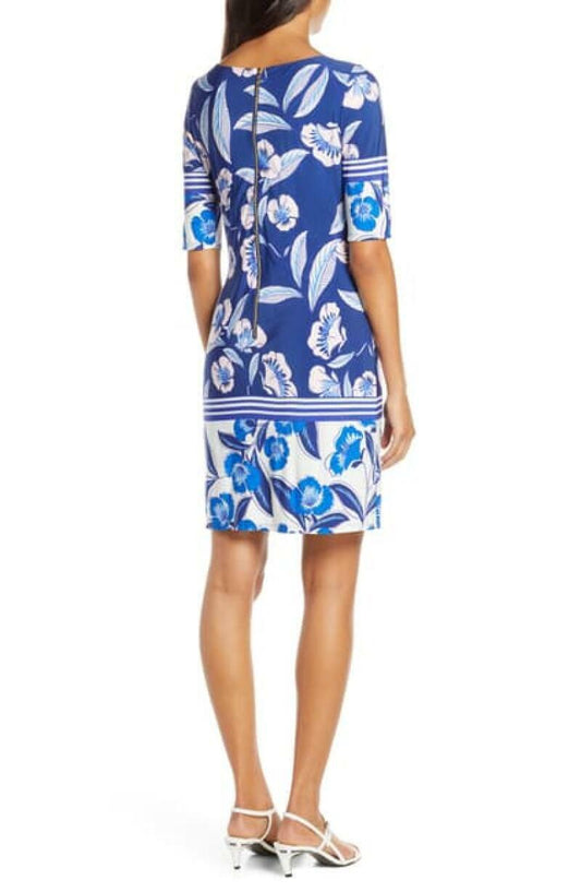 Eliza J 8P Blue Pink Floral Tropical Print Elbow Sleeve Shift Dress