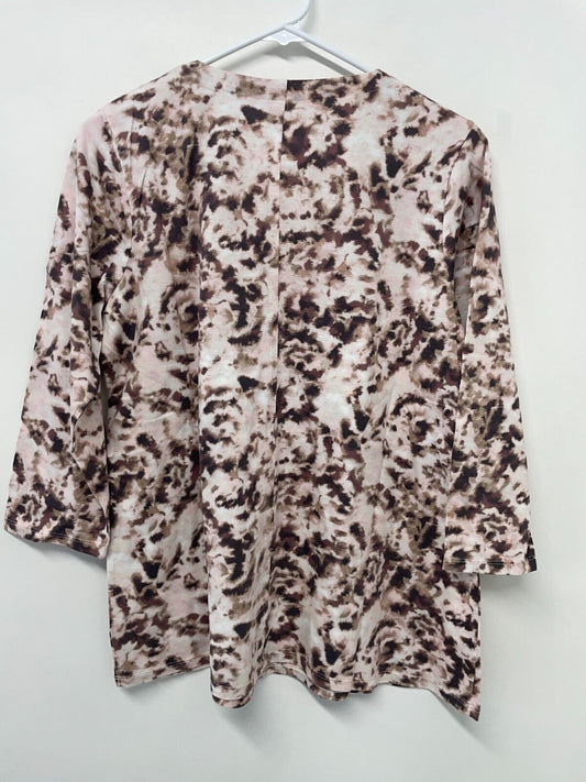 J Jill Women M Pure Jill Printed V-Neck Tee Buff Pink Eclectic Spirals Top Shirt